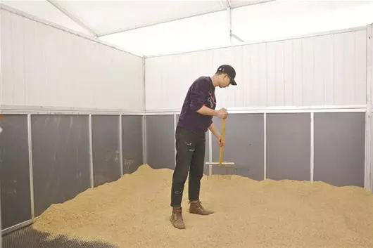 刚值完夜班的学生志愿者荣光辉正在给马匹更换垫料,垫料是稻壳,每个马房要铺15厘米左右,马才会舒服。“每天还要把脏东西清理出来,根据马匹训练情况加草料和水。”每个马房外都有一张信息登记表,上面记录着马匹的名字、品种、年龄、体重、来源地及检疫合格证编号等,还有日常健康检查情况,精确到分秒。