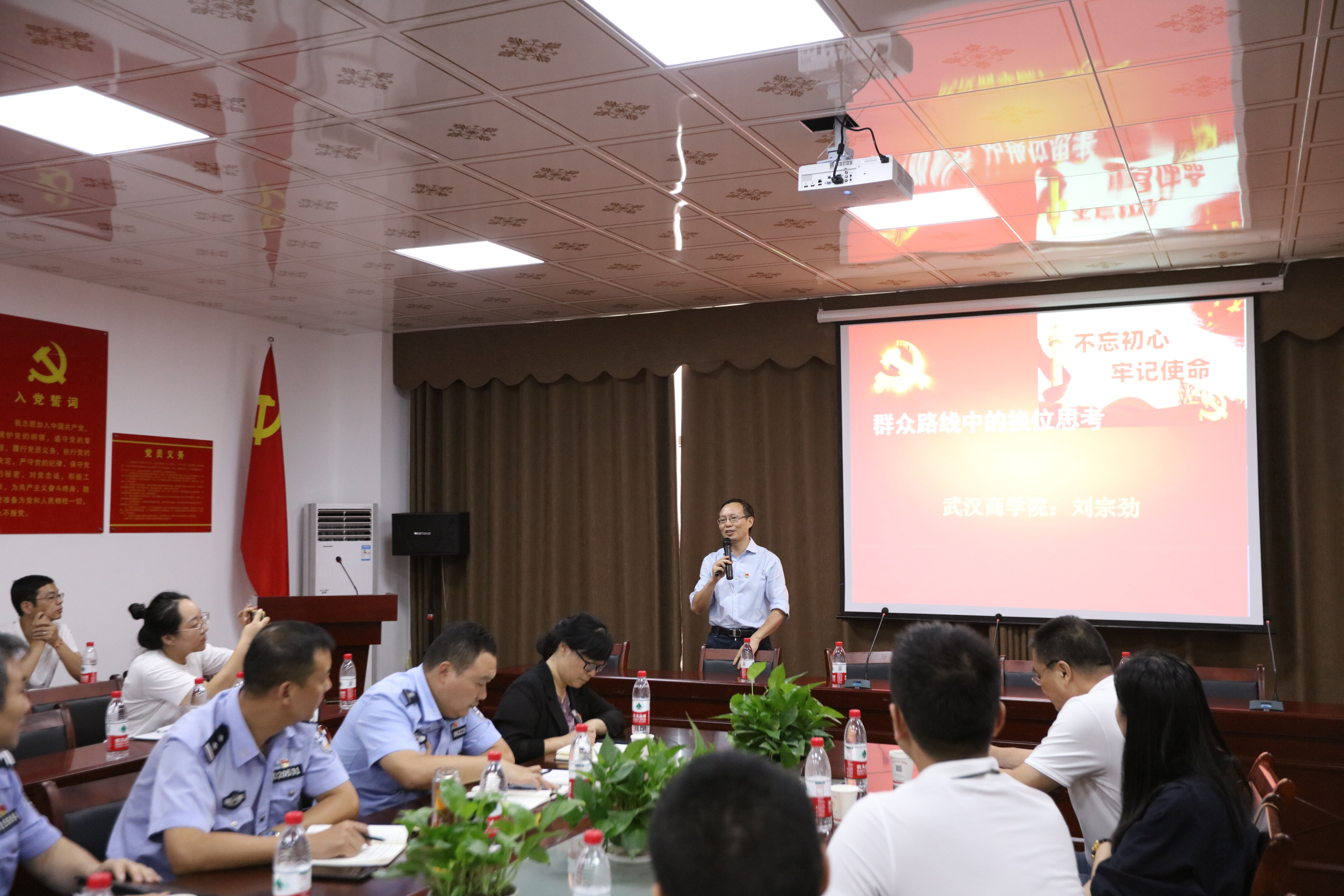 “党员在开展工作中要始终坚持将心比心,多设身处地为群众着想,要时刻关注群众的兴趣和利益。”刘宗劲在讲授过程中从微观到宏观、以小见大通过大量的生动实例与现场互动为到场党员解答了群众工作中什么是换位思考、换位思考的重要性、如何进行换位思考以及换位思考的比较和表达方式四个问题。现场,刘宗劲播放了1927年南昌起义相关视频后,并强调中国共产党的最大政治优势是密切联系群众、最大危险是脱离群众。“群众工作,就是做人的工作。一个党员就是一面旗帜,千百面旗帜可以铸成党的光辉形象。”40分钟里,刘宗劲运用多件案例的对比说明“将心比心就是党性”,朴实真诚的语言赢得现场热烈掌声。