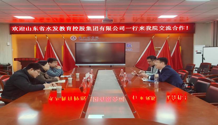 本网讯 3月19日上午,山东省水发教育控股集团有限公司副总经理于舰一行来旅游管理学院洽谈校企合作,研学旅行研究院院长杨崇君、旅游管理学院副院长周耀进等相关同志参加。