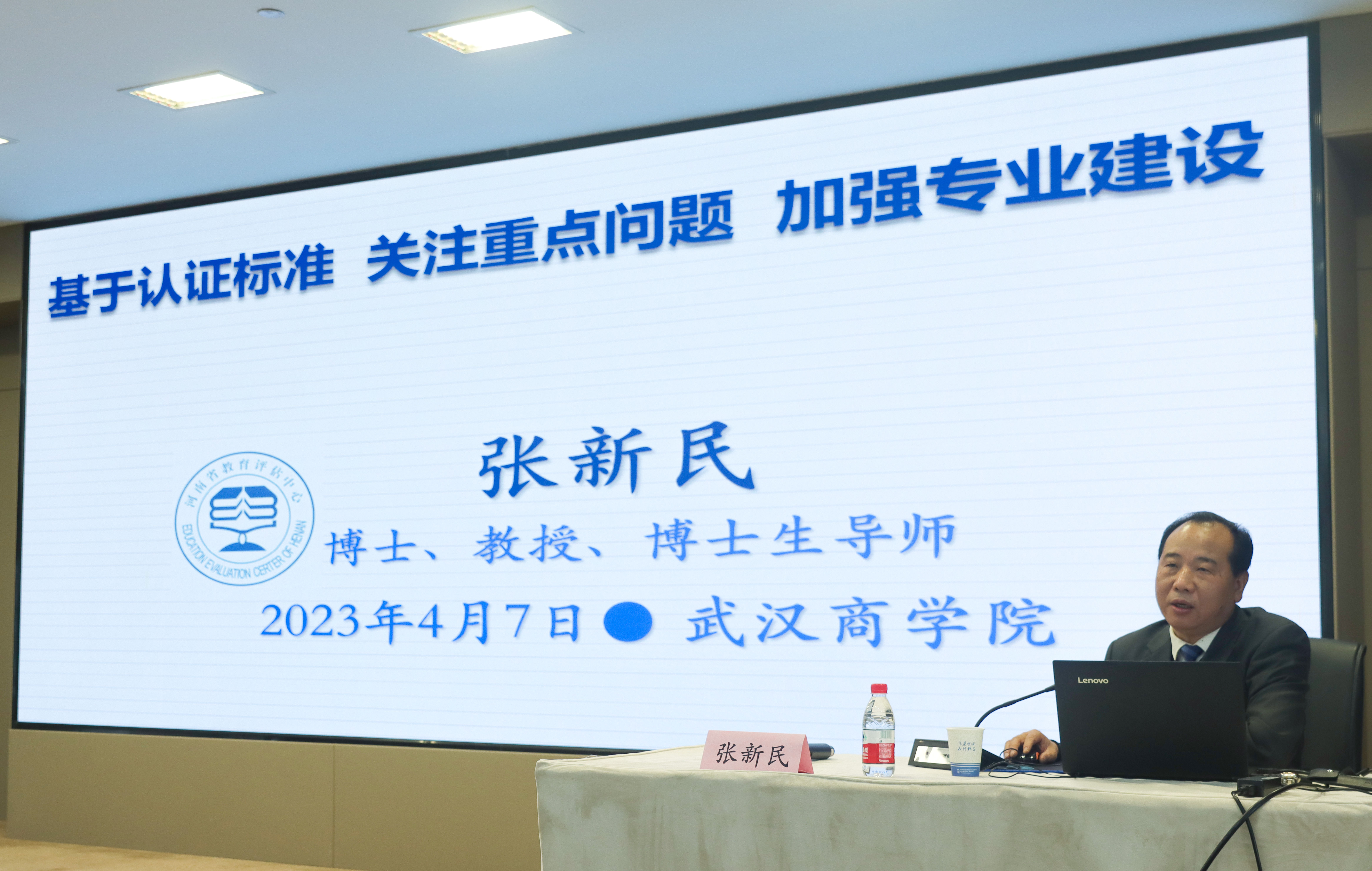 本网讯 4月7日下午,威尼斯官网专业认证工作启动暨专家报告会在行政楼三楼多功能厅举行。河南省教育评估中心副主任张新民教授、湖北省教育科学研究(评估)院李友玉研究员,副校长刘佳霓、相关职能部门负责人、各二级学院院长、书记及教学院长及教师代表、发展规划处及教务处相关工作人员参加会议。会议由教务处罗双燕处长主持,此次会议宣告了威尼斯官网专业认证工作拉开序幕。