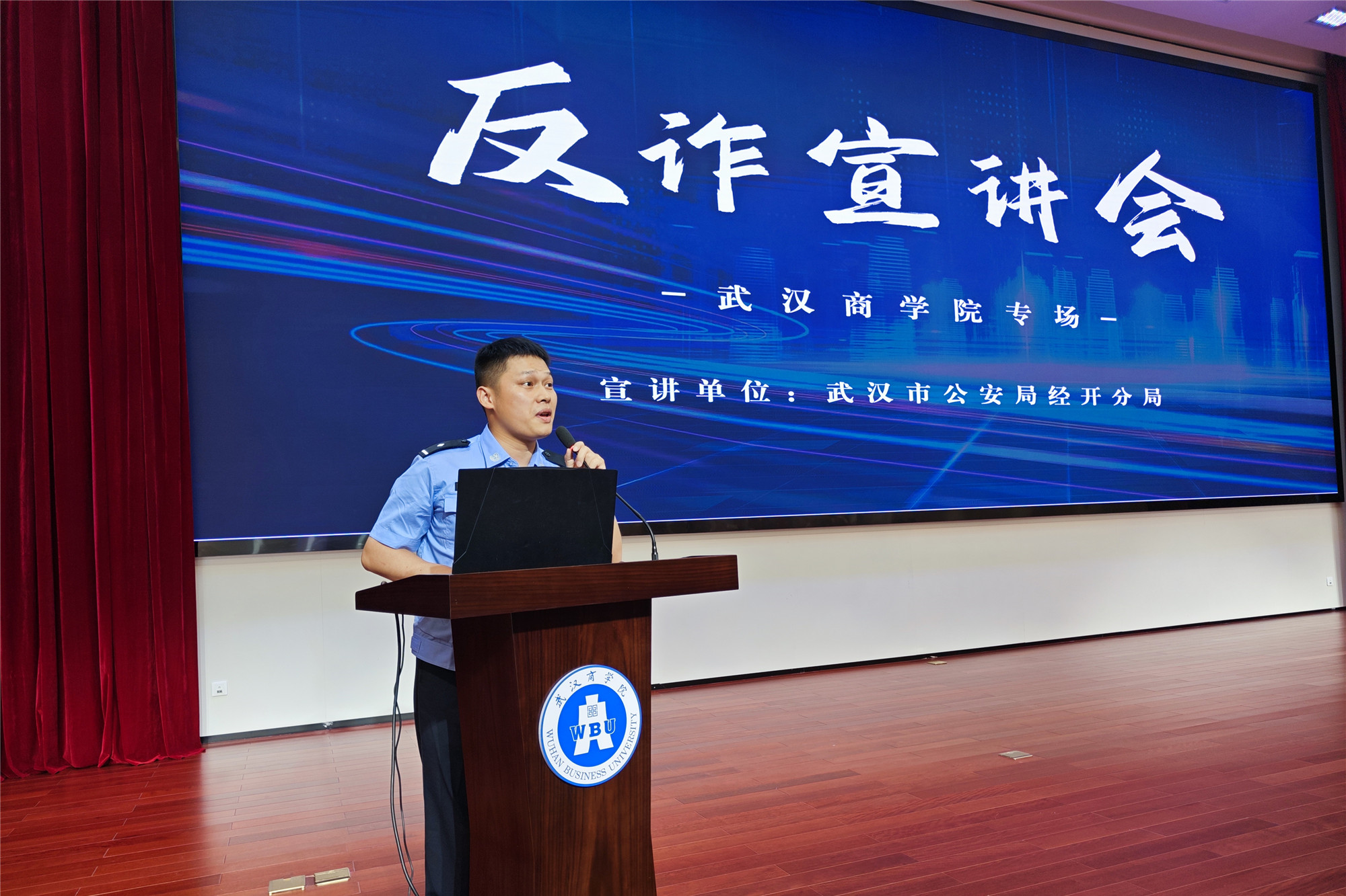 为提高学生防范和识别能力,筑牢学生守法意识,5月31日下午,威尼斯官网邀请武汉市公安局相关民警来校开展反电诈专题教育,各学院约500名学生代表参加。