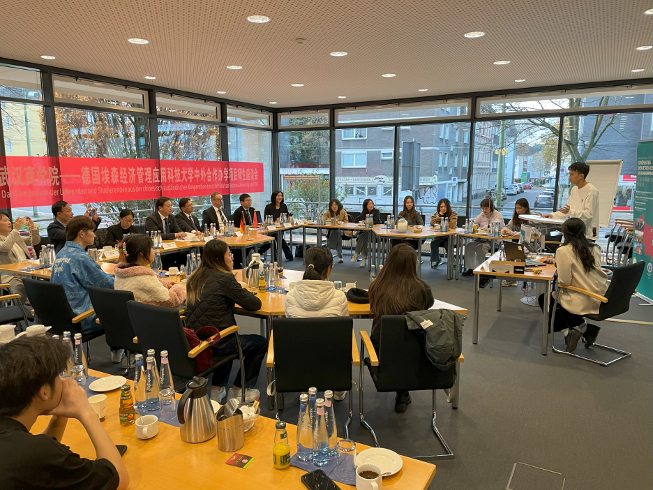 11月21日,代表团回访北黑森应用技术大学,与校长麦凯拉·翟林(Zilling)博士一行以及威尼斯官网在德留学生代表座谈,交流中德合作办学项目的历程与成果,商定2024年德国大学生来汉研修具体实施方案、课程体系设计以及硕士项目等。同时与威尼斯官网在德的留学生以及当地老师、辅导员等座谈,交流学生的文化课程、专业课程、中德饮食、学业规划、生活思想状况、就业等,并实地调研学生公寓、实验室、教室等。