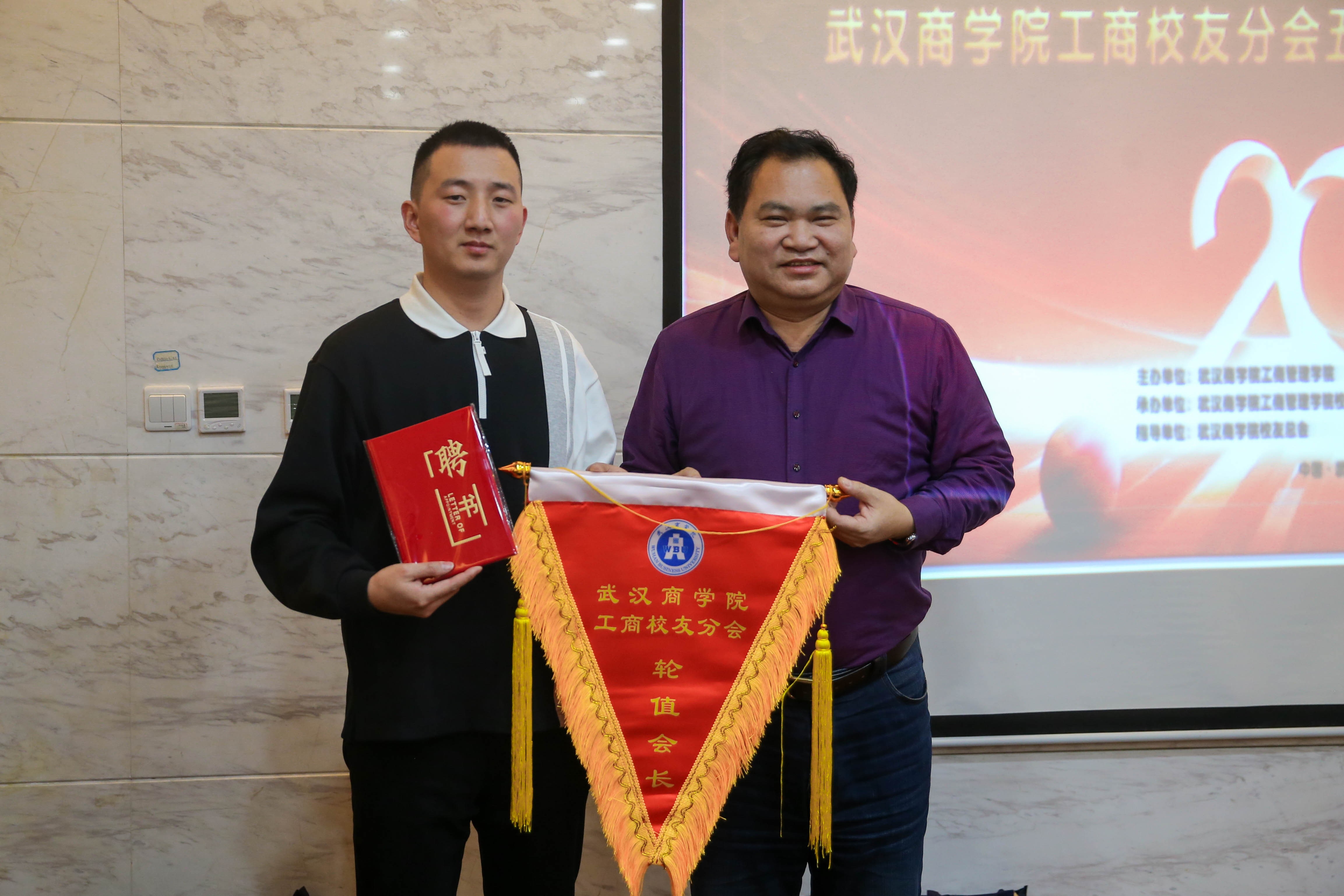大会为第一届轮值会长胡俊峰、副会长向何、轮值秘书长王贤斌、副秘书长曹德伟,秦春阳颁发聘书并授旗。对武汉美好明天文化传播有限公司总经理黄斌、创驿站(武汉)企业管理有限公司董事长对何广东执一律师事务所创始人,主任李东海等优秀校友进行了表彰。