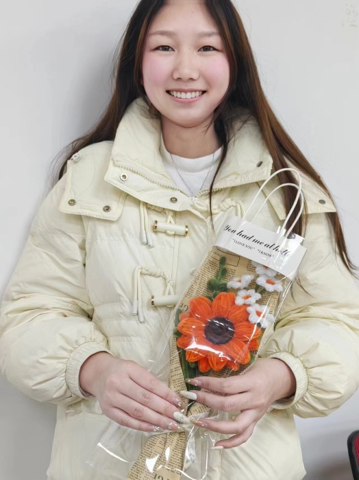 这一决定源于社团成员们对女生们的深深敬意和关怀。他们希望通过这份特别的礼物,让每一位女生都能感受到温暖与关爱。妇女节前一天,社团成员们将手工编织花送到了每一位女生手中。当女生们收到这份充满心意的礼物时,脸上都露出了惊喜和感动的笑容。她们纷纷表示,这份礼物非常特别,让她们感受到了来自同学们的真诚祝福和关怀。
