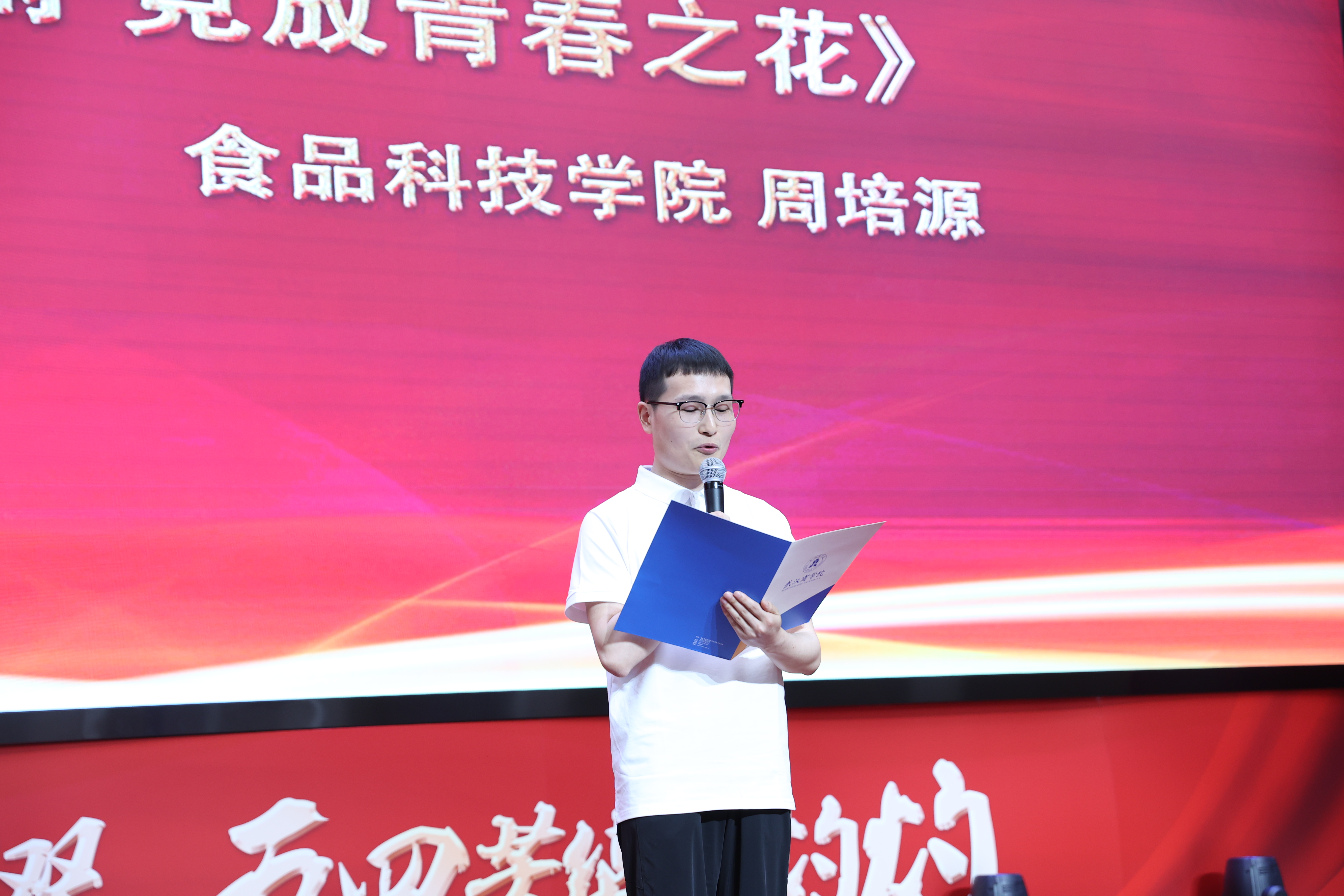 2020级外国语学院的优秀学生代表杨晏康围绕“青春正好 奔赴热爱”进行分享交流,号召广大青年们勇做起而行之的行动者,不做坐而论道的清谈客。青年朋友们要以五四精神为引领,找准青春坐标,共绘属于新时代青年的壮丽画卷。